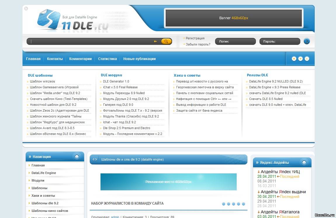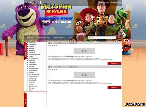 Шаблон для uCoz VKina. Шаблон для сайтов uCoz, адаптированный с сайта VKina.ru. Подойдет для сайтов с кино тематикой. Дизайн шаблона сделан очень красиво и в приятных тонах. В шапке сайта есть модифицированная форма входа, форма поиска и лого, которое вы можете заменить на своё. После шапки идут два горизонтальных меню, которые отлично придают функциональность и юзабильность сайта. В контентовой части есть возможность сортировки. Также не менее красиво выполнены сайдбары, в начале левого сайдбара стоит пачка с попкорном, а в начале правого старинный телевизор, что придает красоту и тематичность сайту.