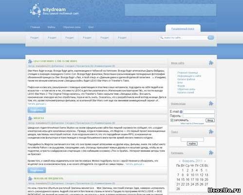 Хороший голубой шаблон для uCoz, выполненный довольно в простом стиле. Его дизайн не имеет характерной тематике, поэтому шаблон можно использовать для любых сайтов или блогов. Он фиксируется в ширину, имеет две колонки и правый сайдбар.