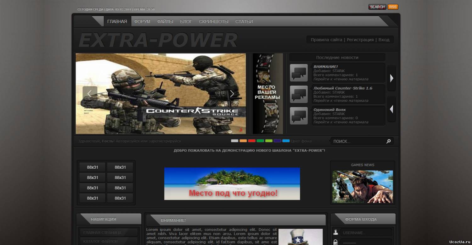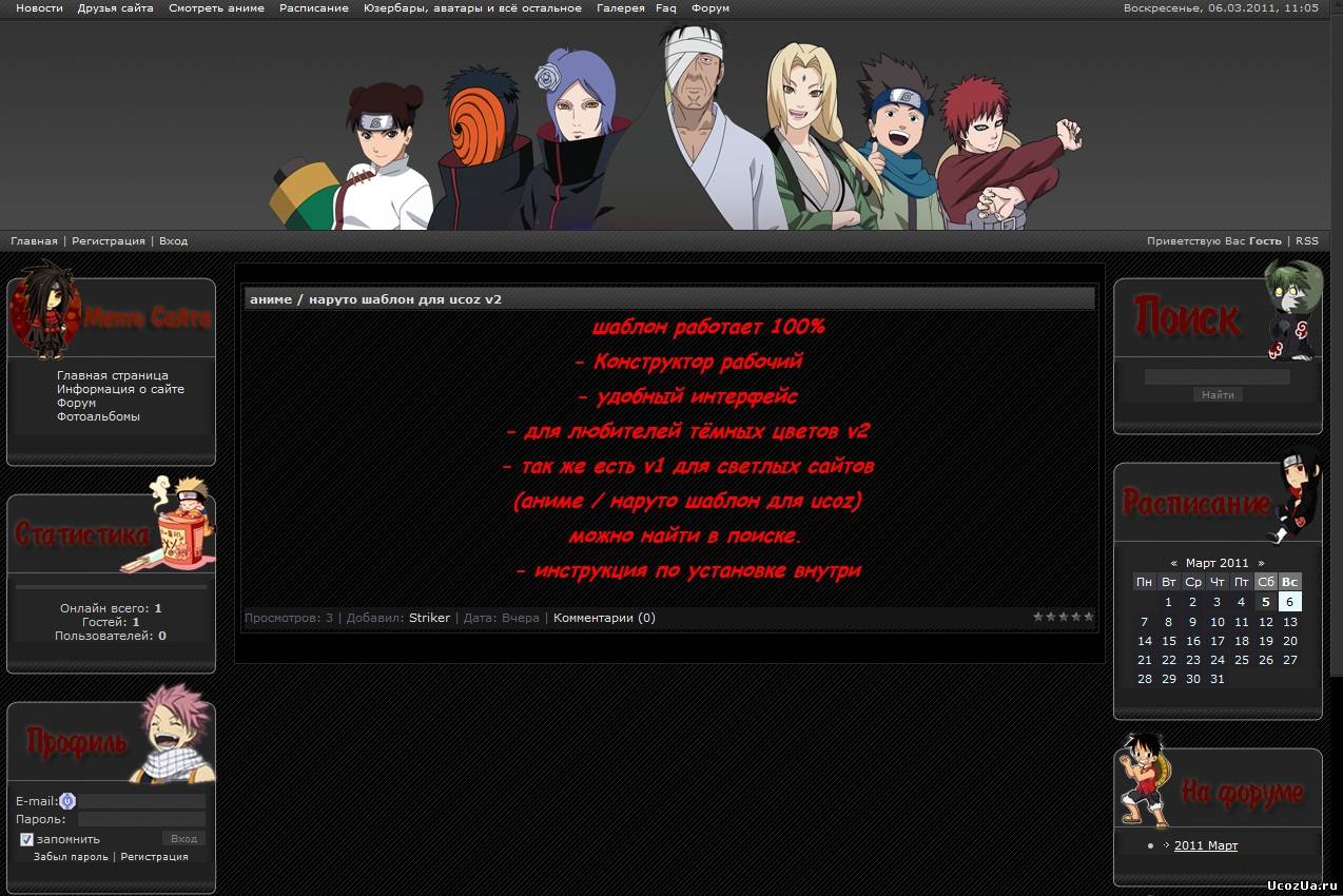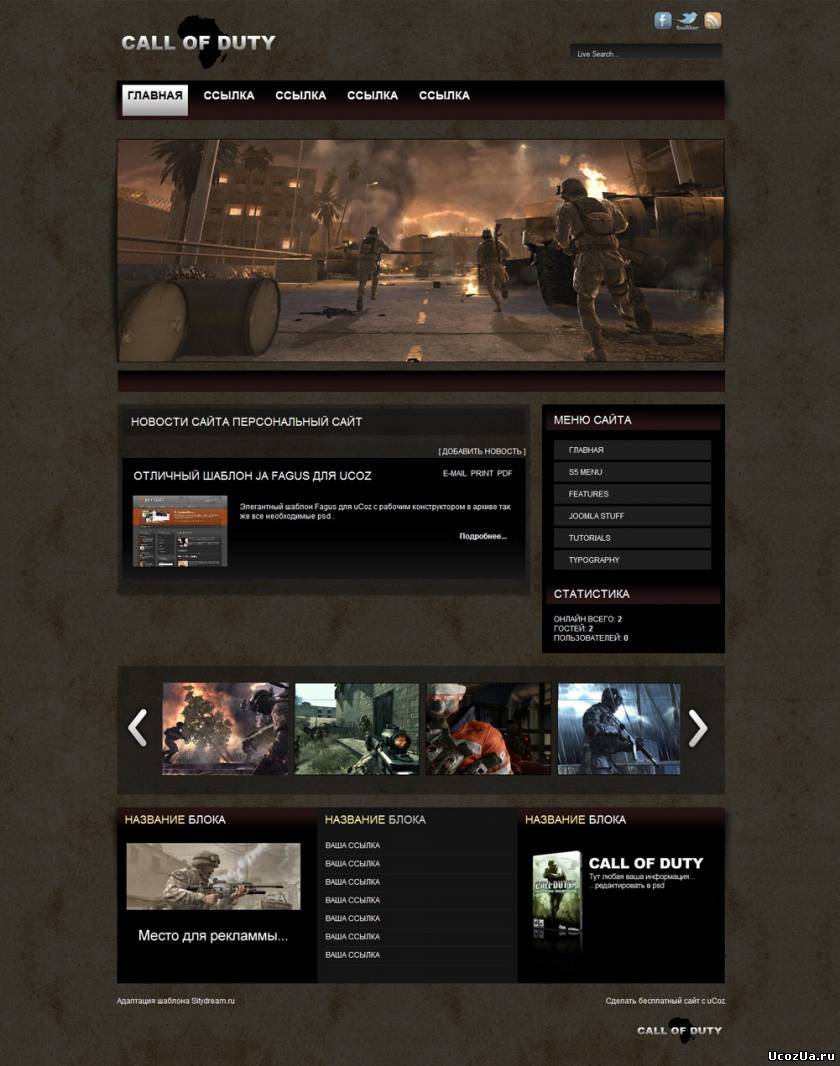 Красивый шаблон (С рабочим конструтором) с фиксированной шириной для сайтов тематики NFS. Шаблон кроссобраузерный, тоесть везде смотрится отлично. Для вас дорогие пользователи By Panzer, от сайта Ucozen.Ru