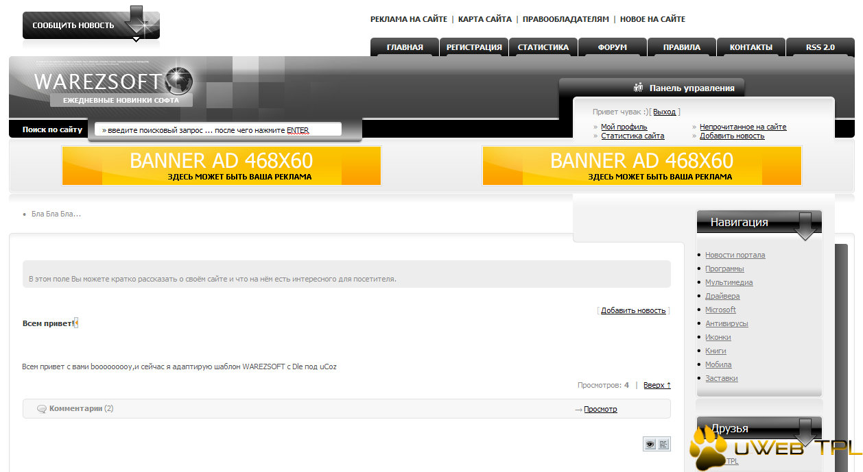 Описание: Вот сайт так и не создал и дизайн не понадобился. Решил скинуть это дизайн в интернет бесплатно! Дизайн был создан для тематики uCoz. Но конечно же можно переделать под любую другую. Желаю удачи и продвижения вашего сайта.